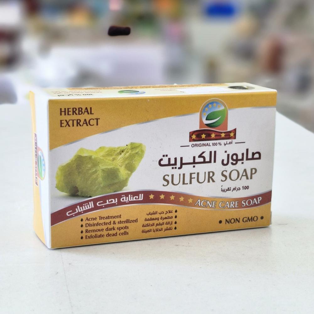 صابونة الكبريت تحتوي على مكونات طبيعية تُستخدم لتنقية البشرة وتخفيف مشاكلها كالحبوب والتهابات الجلد بفضل خصائص الكبريت المطهّرة.